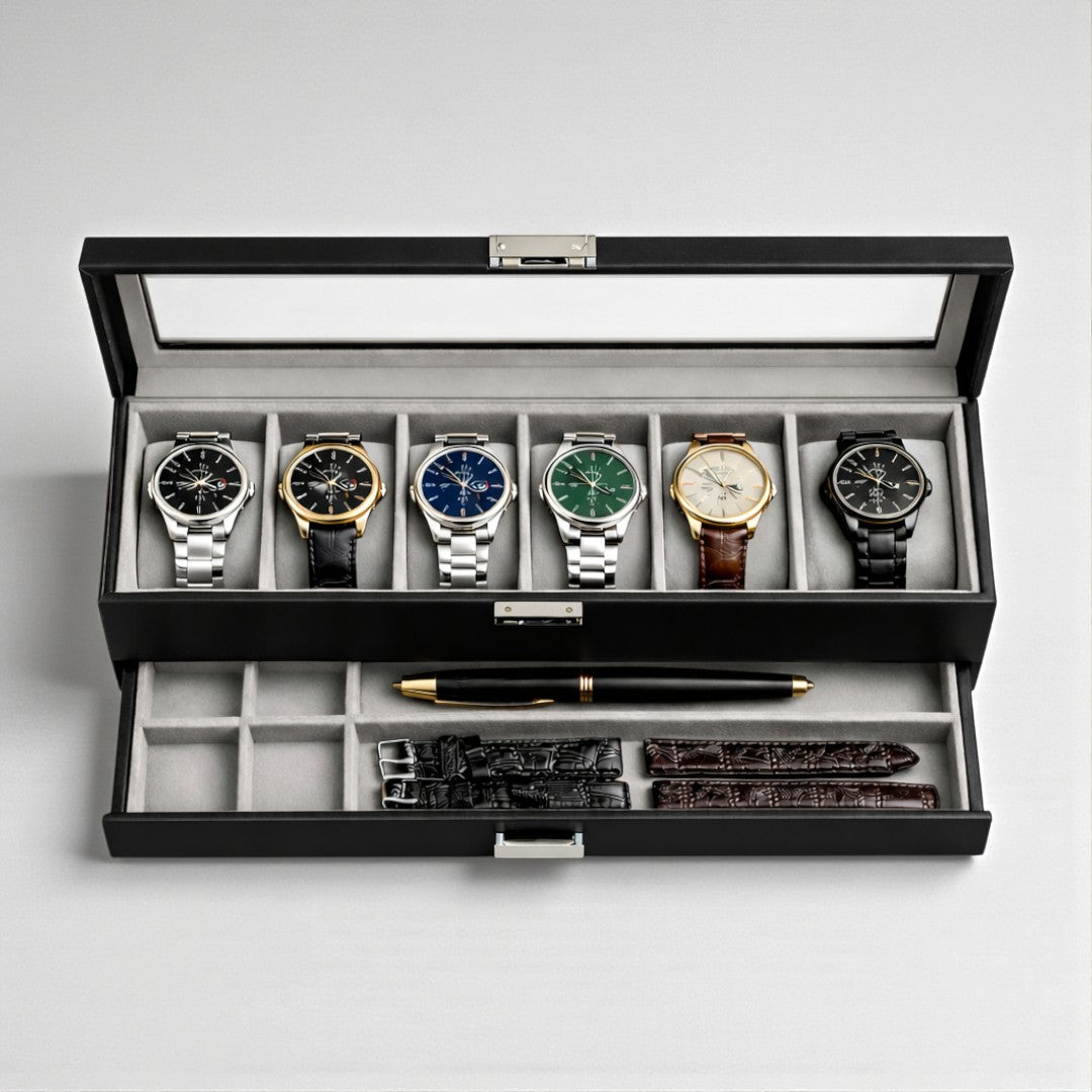Uhrenbox (6 Fächer) - Schwarz