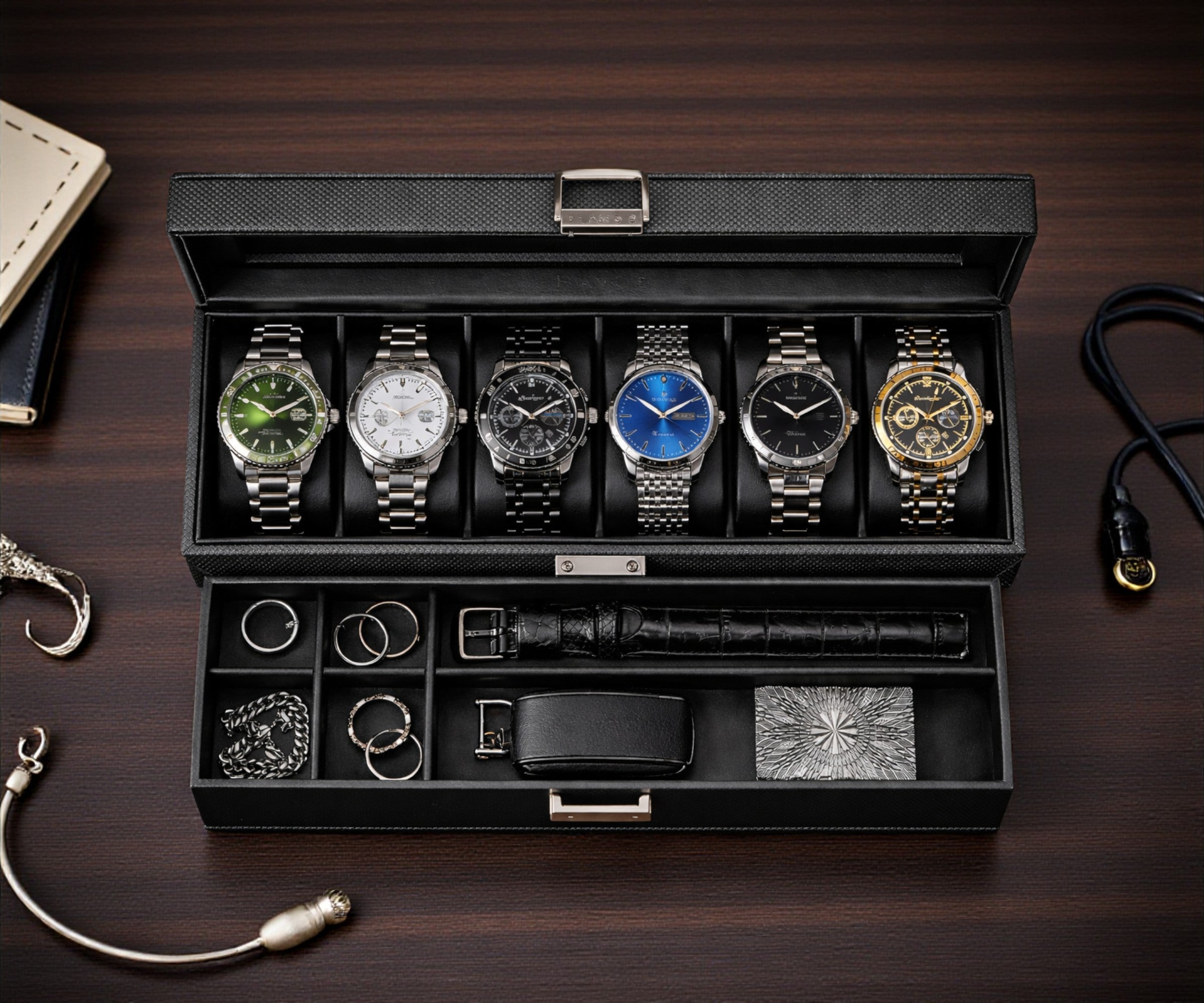 ✓ Intelligente Organisation - Entwickelt zur präzisen Aufbewahrung und Organisation von Uhren, Schmuck und wichtigen Accessoires. Jedes Fach ist so gestaltet, dass Ihre Stücke geschützt, gut sichtbar und jederzeit griffbereit sind.